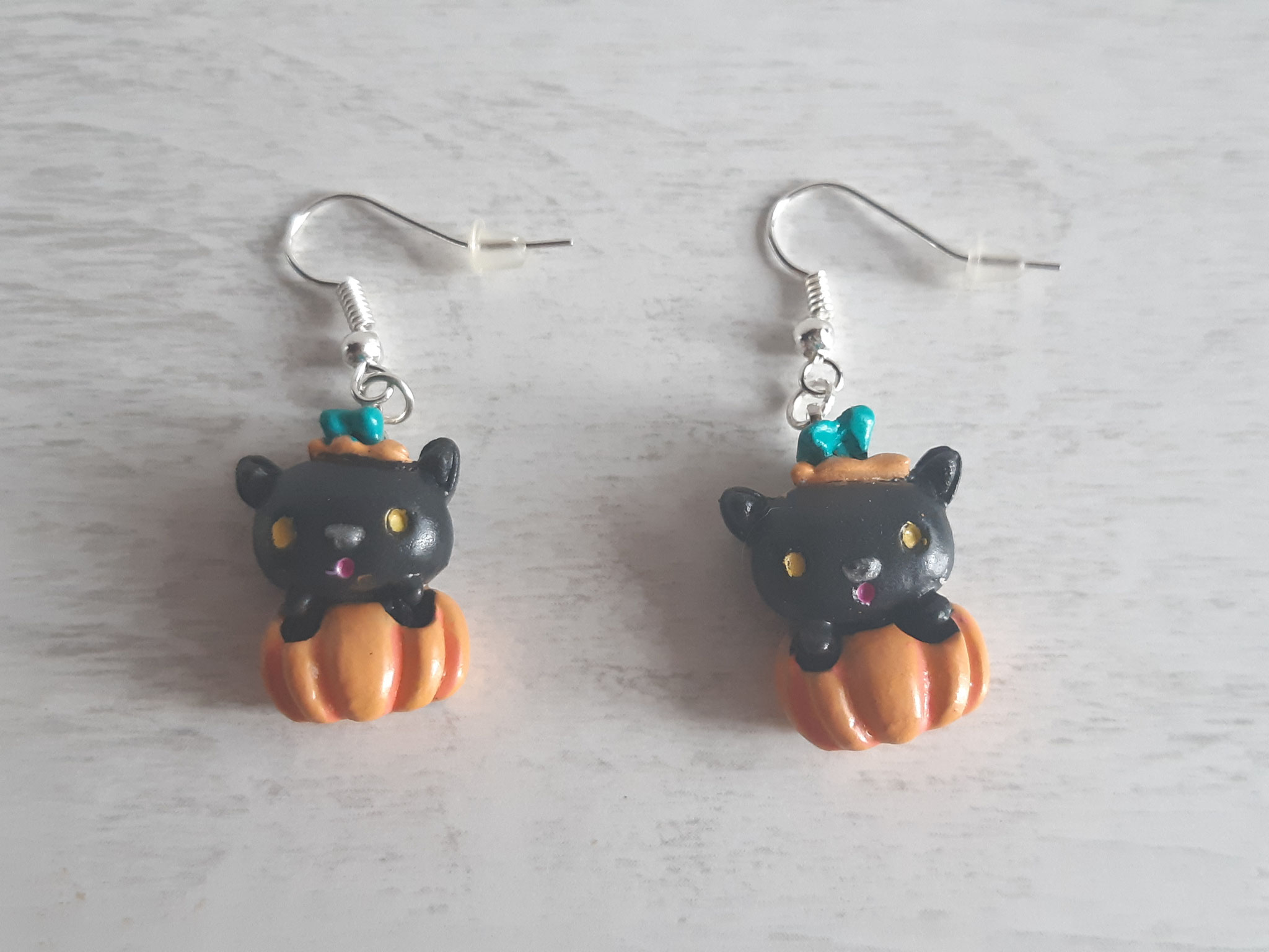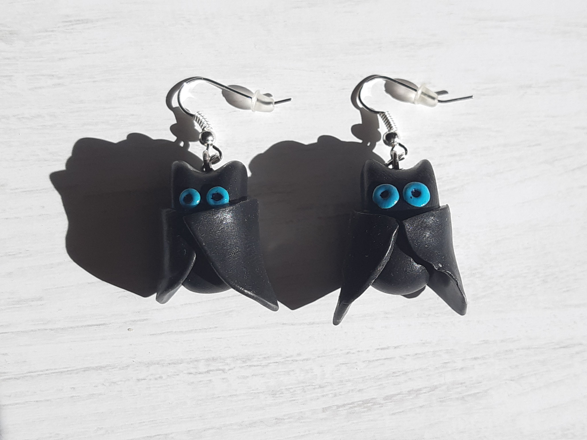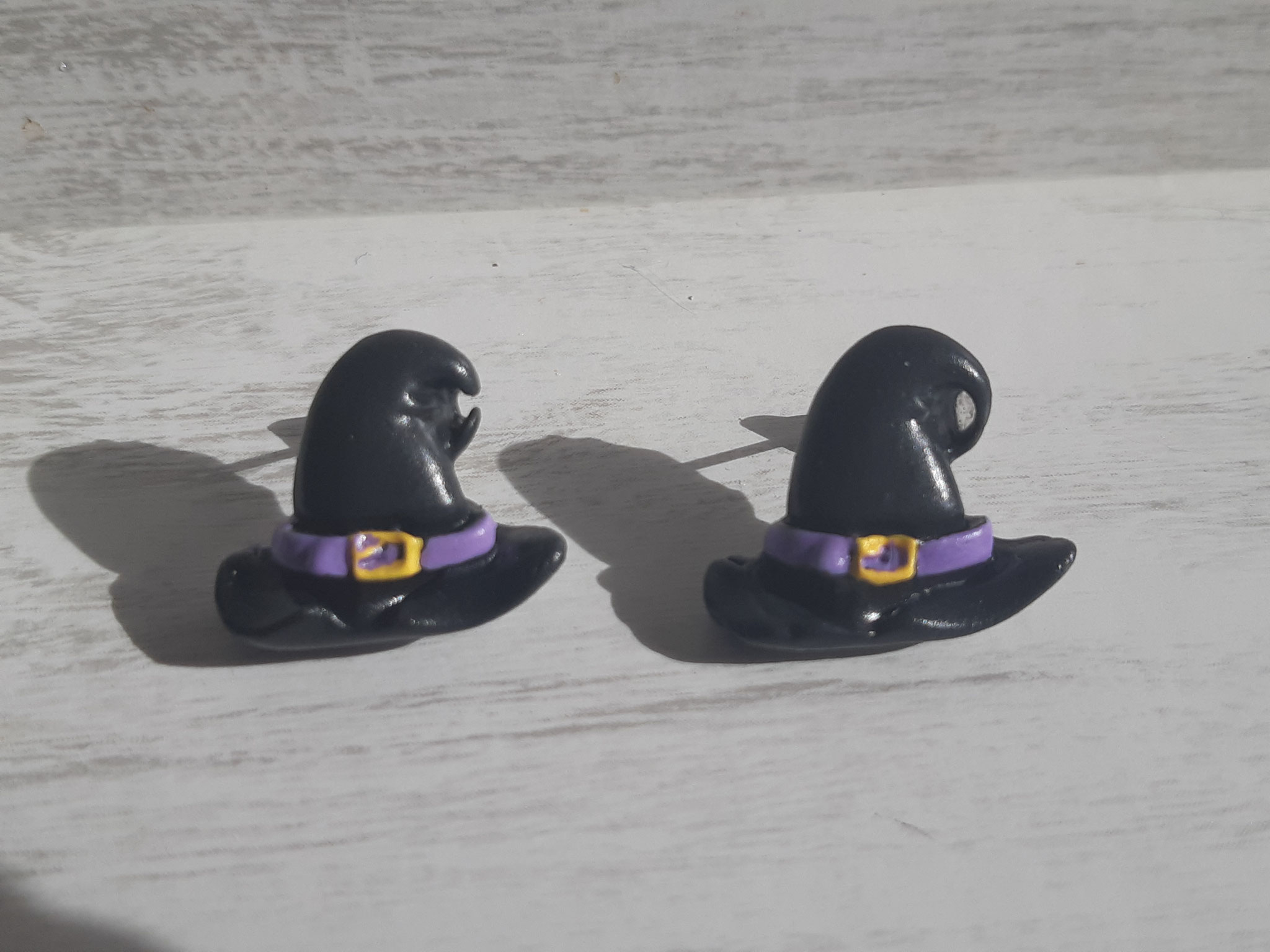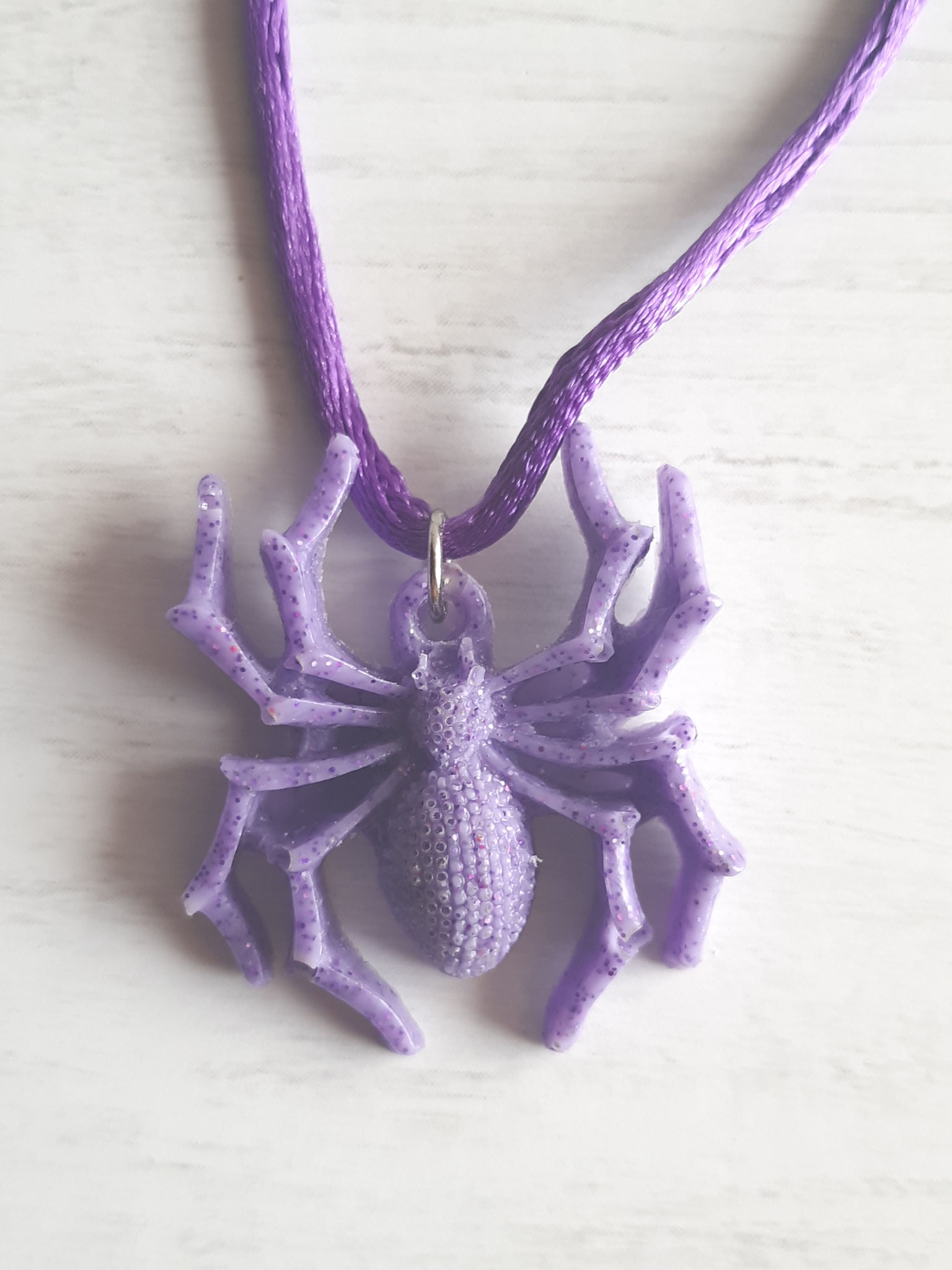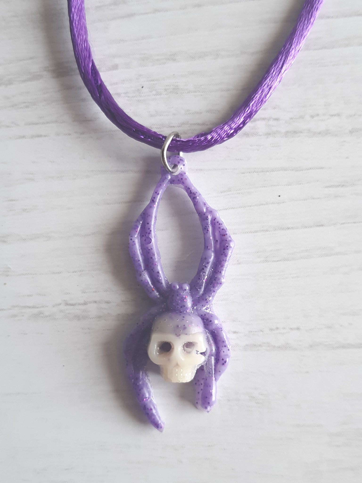Composition : Anneaux métal, cordons satin violet et blanc, plumes bleues, diverses perles.