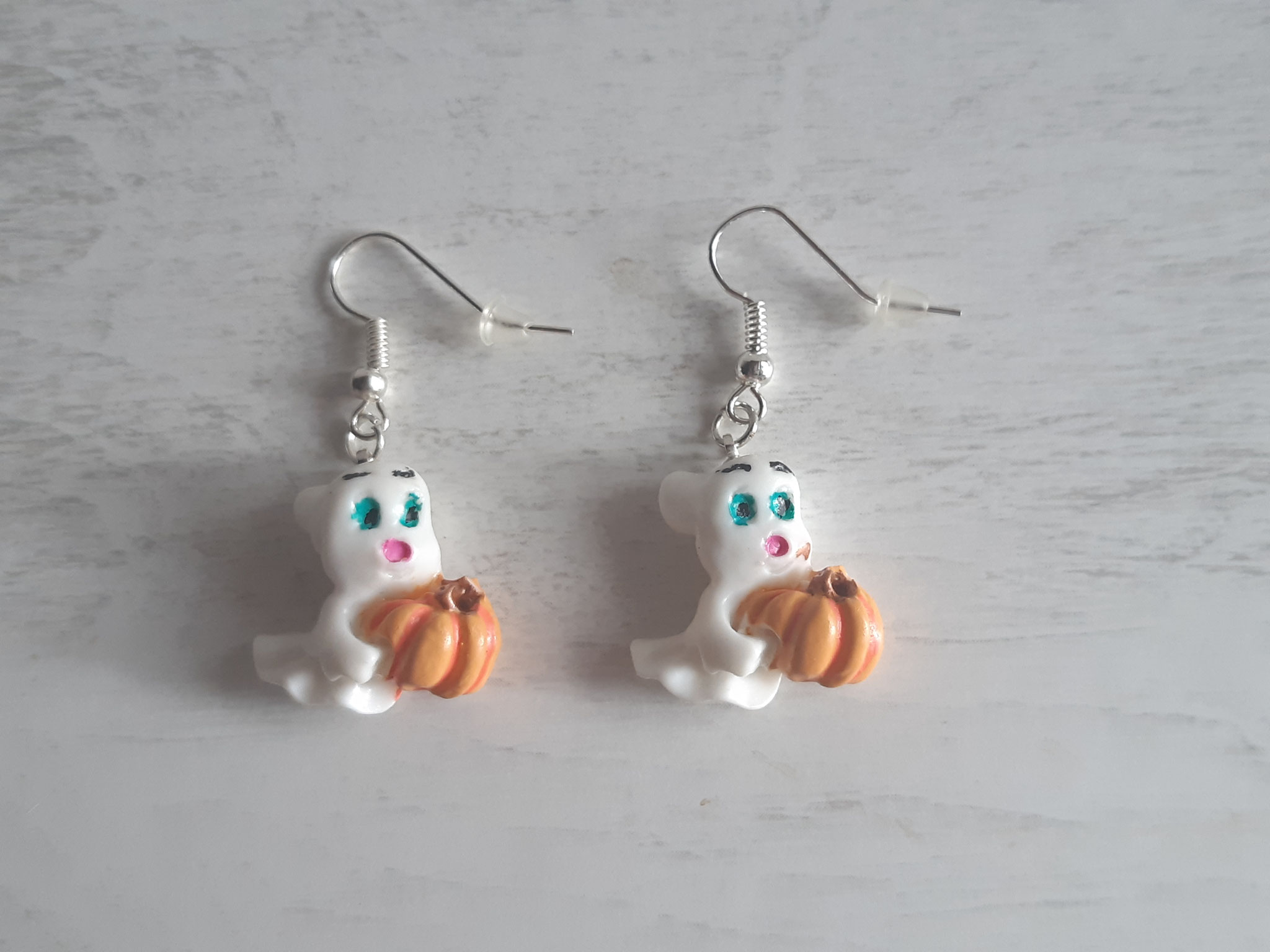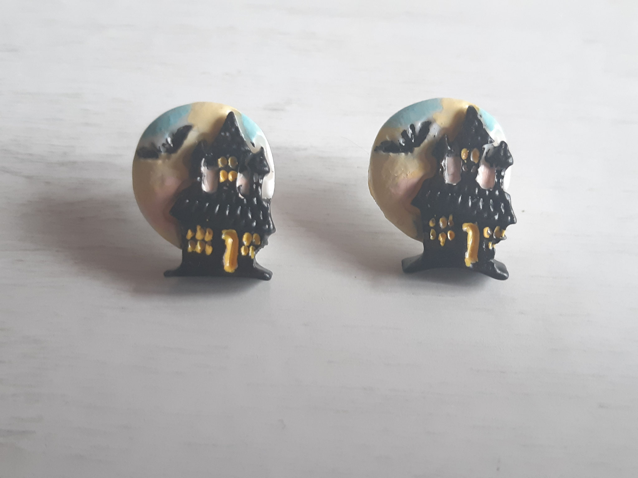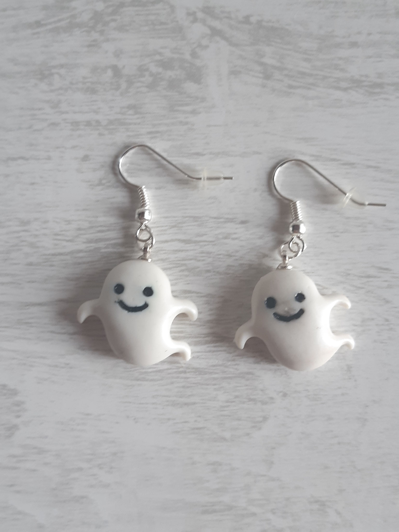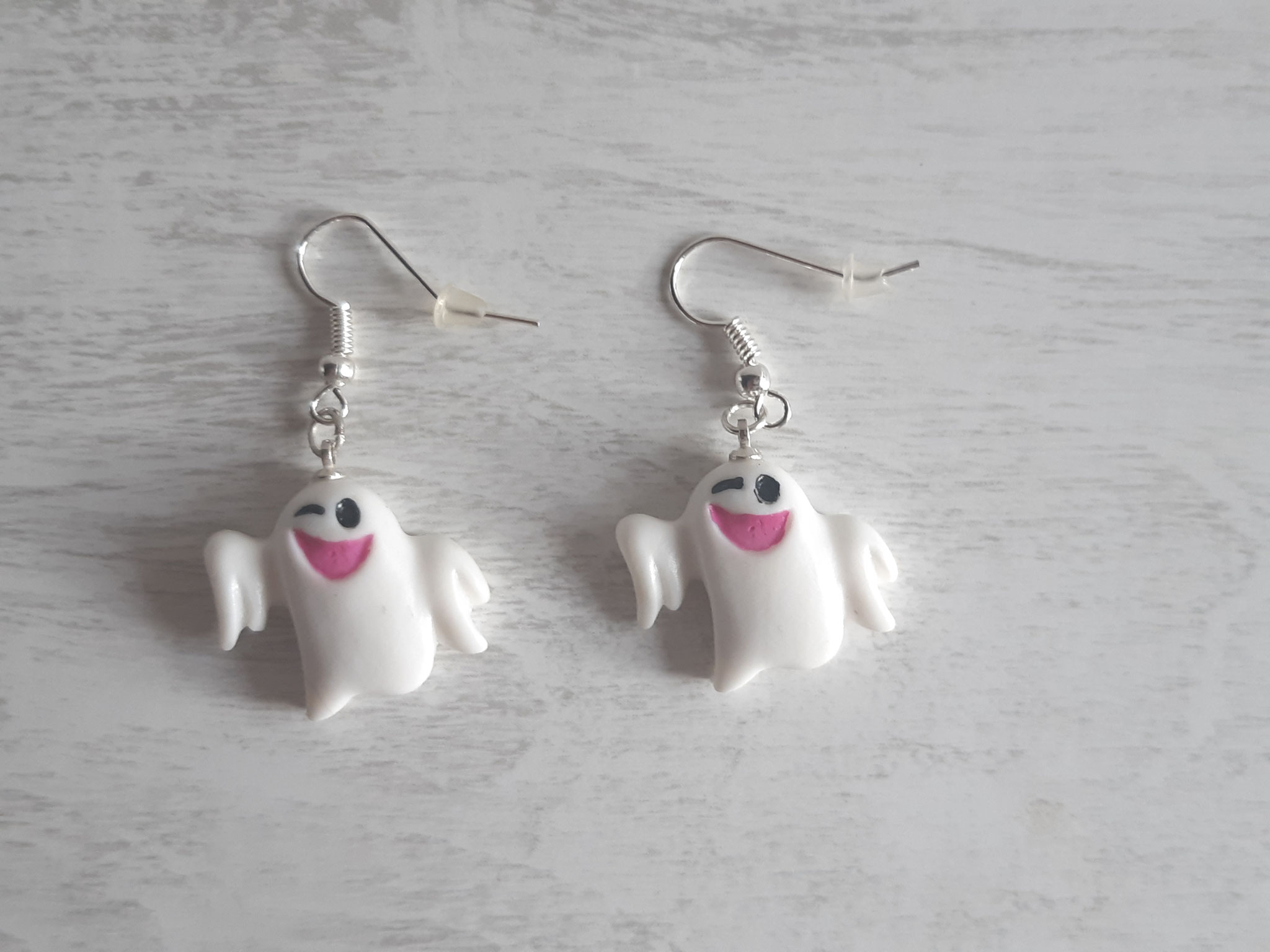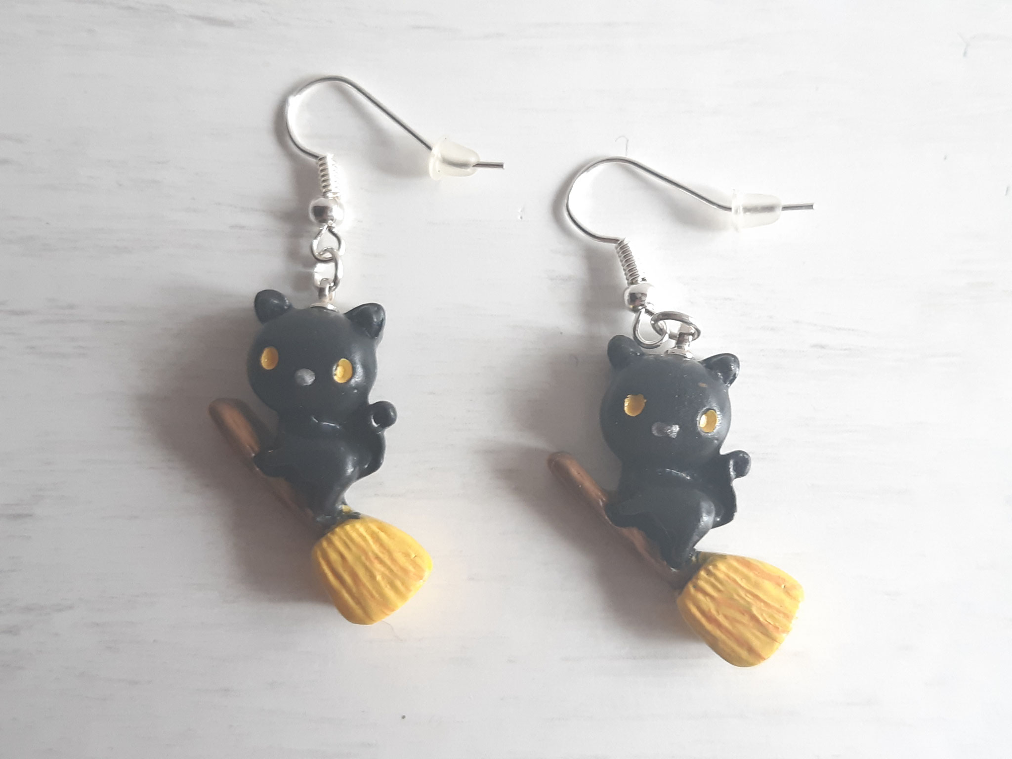 Composition : Anneaux métal, cordons satin violet et blanc, plumes bleues, diverses perles.