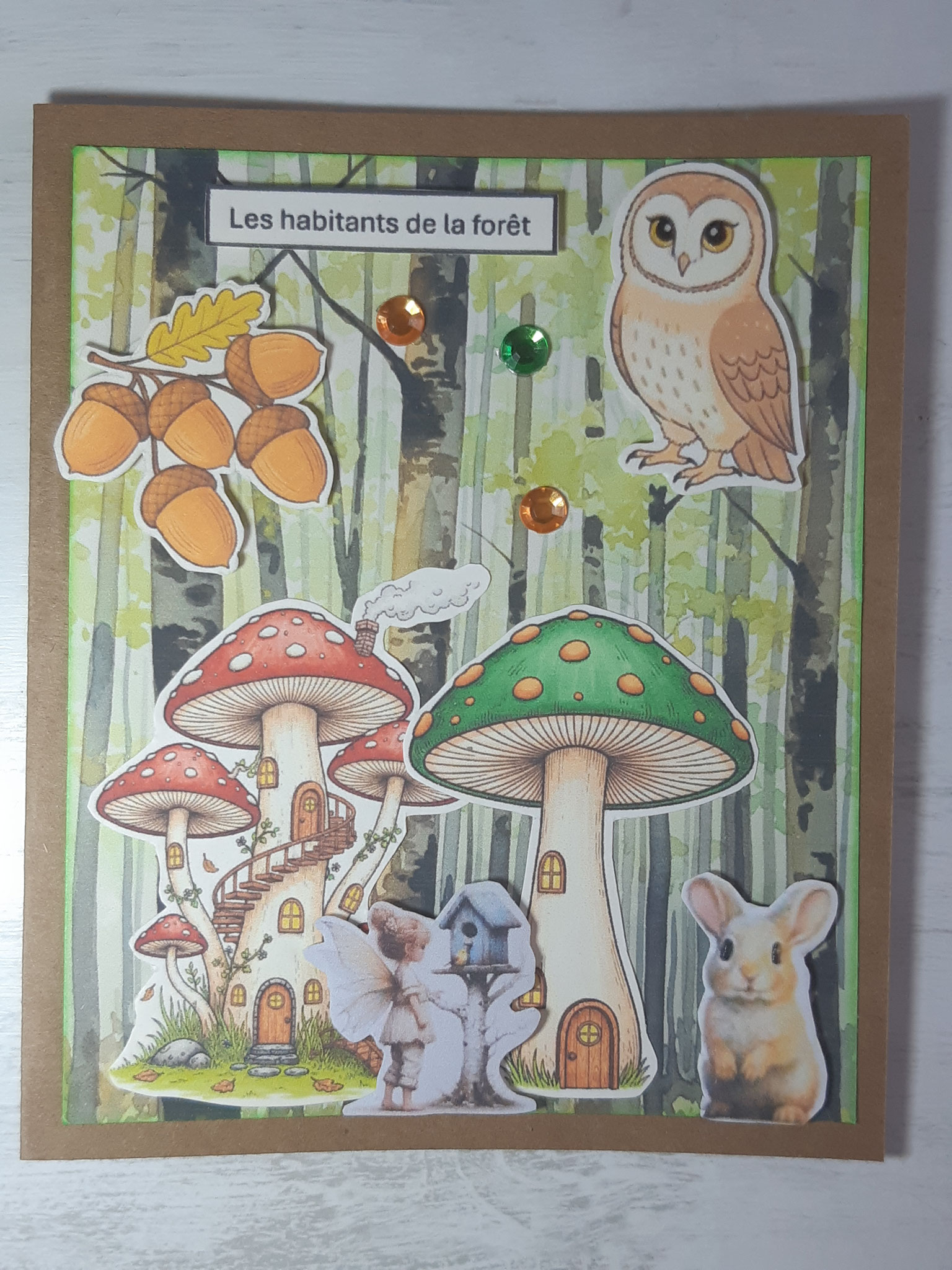 Composition : Anneau métal, cordon satin doré, plumes vertes, diverses perles, 1 perle coeur en verre.
