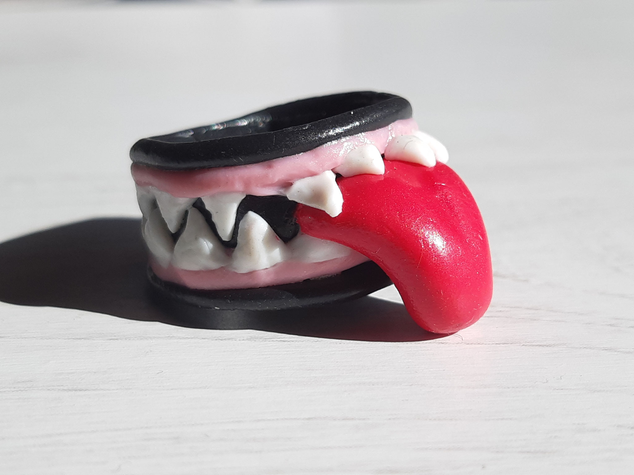 Composition : Anneau métal, cordon satin bleu, cuir bleu, diverses rubans, perles nacrées, 1 perle coeur en verre.